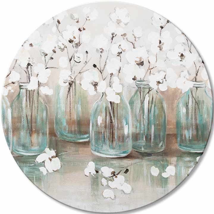 Distinse de formele rectangulare tradiționale, picturile rotunde adaugă un element de fluiditate și infinitate vizuală oricărui interior. Forma lor unică extinde limitele percepțiilor tradiționale ale artei, deschizând noi posibilități de compoziție și design și aducând dinamism și prospețime în casele și birourile dumneavoastră.