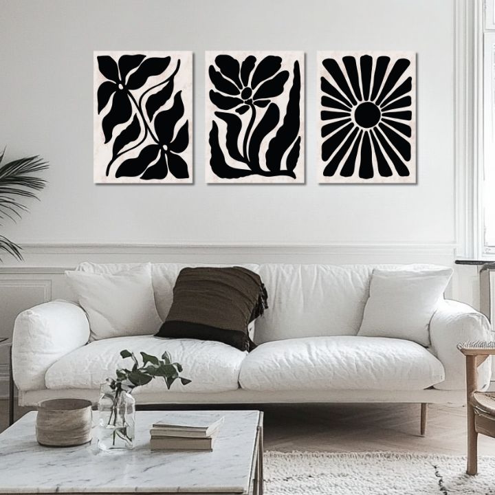 Colecția Art in Simplicity cuprinde seturi de tablouri din trei piese care prezintă flori abstracte, siluete feminine, linii organice și geometrie delicată. Culorile contrastante, liniile curate și motivele simpliste vor adăuga prospețime, spirit ludic și eleganță atemporală locuinței dumneavoastră.