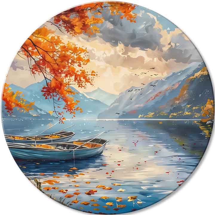 Tablouri rotunde cu acril liniștea lacului | 60 cm