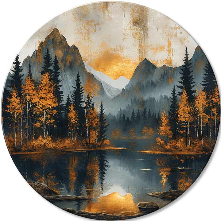 Picturi rotunde cu acrilic Crepuscul într-o vale liniștită | 60 cm