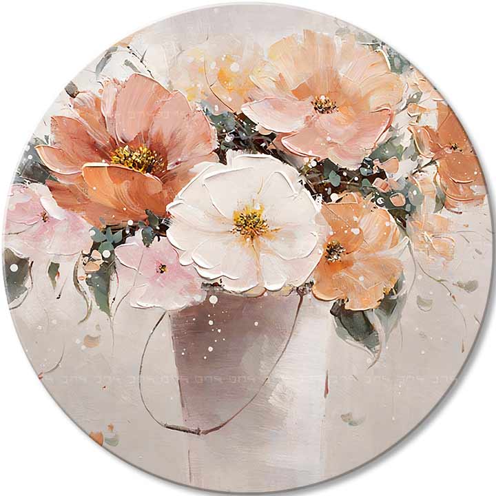 Distinse de formele rectangulare tradiționale, picturile rotunde adaugă un element de fluiditate și infinitate vizuală oricărui interior. Forma lor unică extinde limitele percepțiilor tradiționale ale artei, deschizând noi posibilități de compoziție și design și aducând dinamism și prospețime în casele și birourile dumneavoastră.